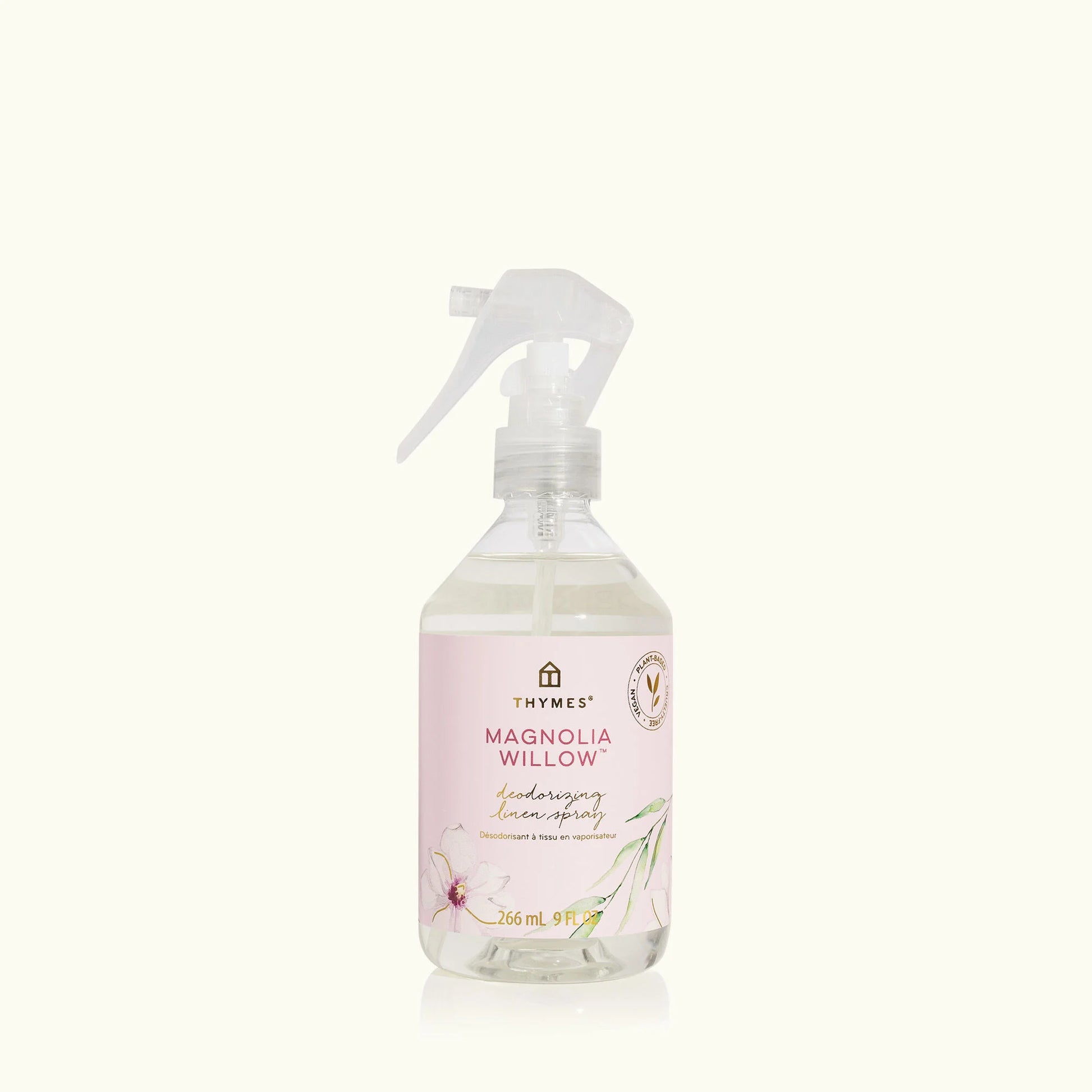 The perfect finishing touch, this powerful Magnolia Willow Deodorizing Linen Spray eliminates both airborne and surface household odors, leaving a refreshing scent behind. Perfect for freshening the fabrics inside your home, such as towels, clothing, sheets, upholstery, drapery, carpets, and more.